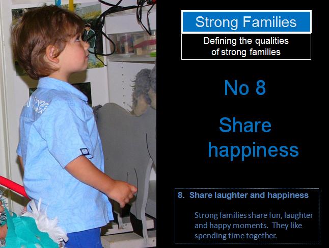 Lastly, and perhaps most important of all, ‘strong families’ share fun, laughter and happy moments. They like spending time together.